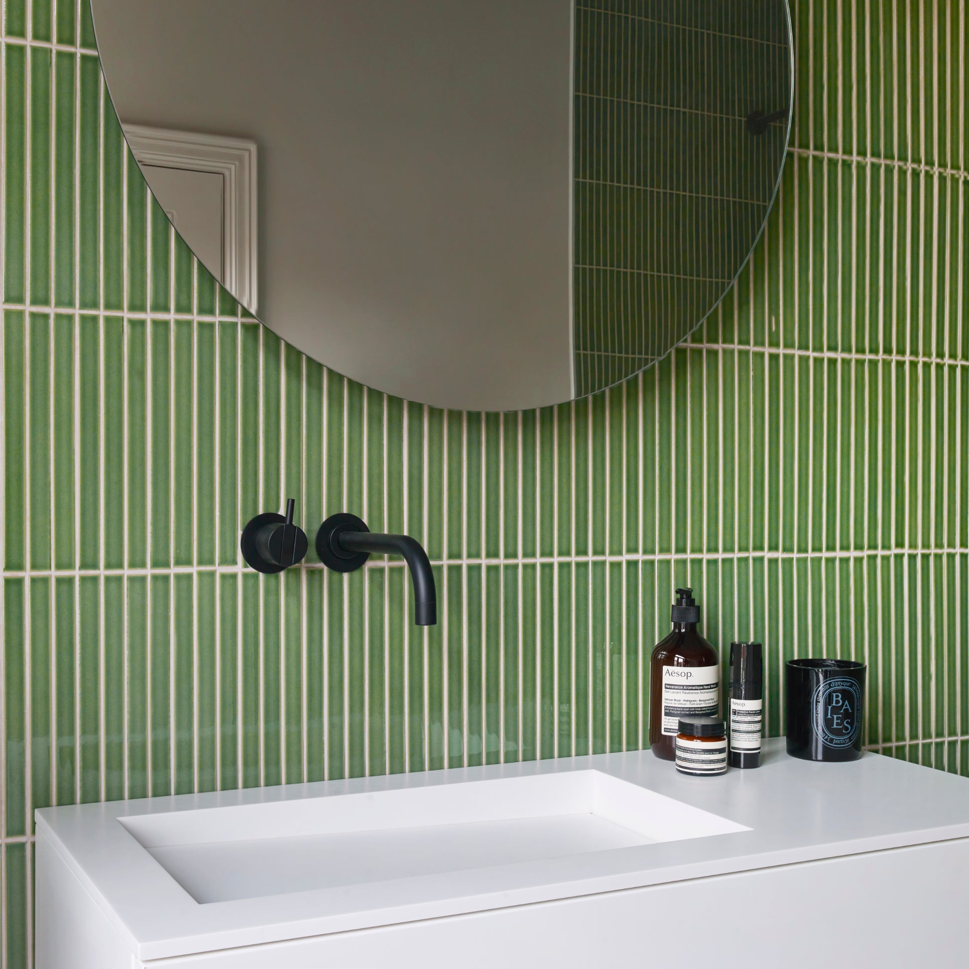 The price is per carton of 136 tiles, with coverage of 0.76 m2 (based on 6mm joints) but please note that images of the green Arcaico with the white sink and round mirror were fitted with 2mm joints (0.72m2/carton)